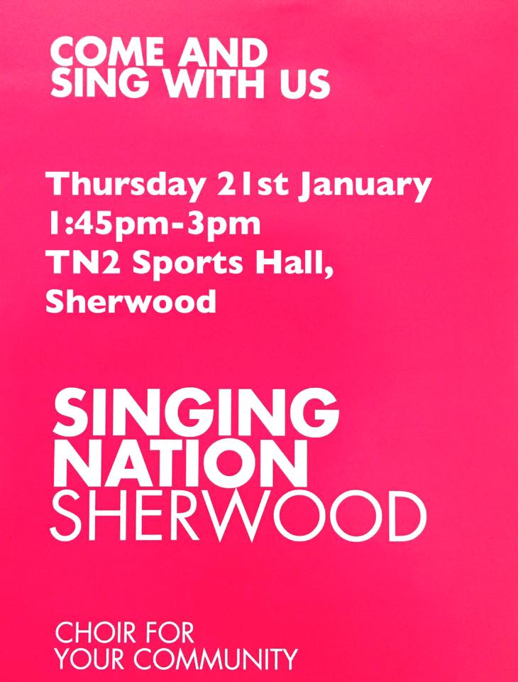 20 Jan 2016 Sticky Post By admin Posted in Choirs, News, Uncategorized Permalink New Community Choir To start Sticky Post By admin On January 20, 2016 We are very, very, very excited to be working together with Town and Country Housing and Sherwood Partnership to bring a new community choir to Sherwood. It starts tomorrow! Whoop Whoop! New Community Choir To start January 22nd, 2016admin